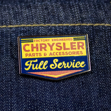 Enamel Pin - Chrysler Full Service $9.501.25" wide Metal Chrysler and related logos, vehicle model names and trade dress are trademarks of FCA US LLC and used under license by Detroit S...