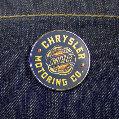 Enamel Pin - Chrysler Motoring Co. $9.501" wide Metal Chrysler and related logos, vehicle model names and trade dress are trademarks of FCA US LLC and used under license by Detroit Shir...