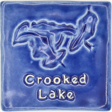 Part of our Local Lakes series. This 4x4 tile represents a relief carving of Crooked Lake (Emmet County). Lake tiles can be personalized with cotta...