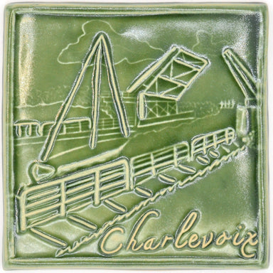 Introducing the larger version of our 4" original Charlevoix tile design. The tile features a sailboat going through the raised drawbridge that is ...