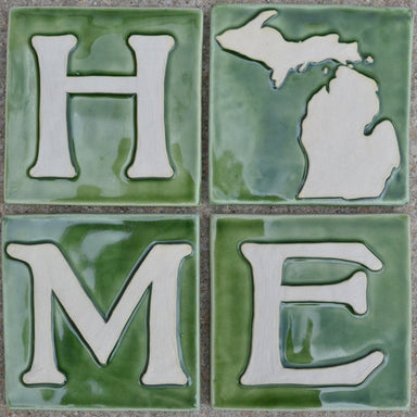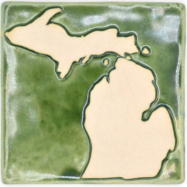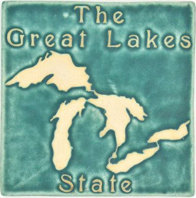 The 6x6 version of our FAVORITE PLACE. Hand carved to represent the Great State of Michigan. This 6x6 tile is hand carved and pressed and has a buf...