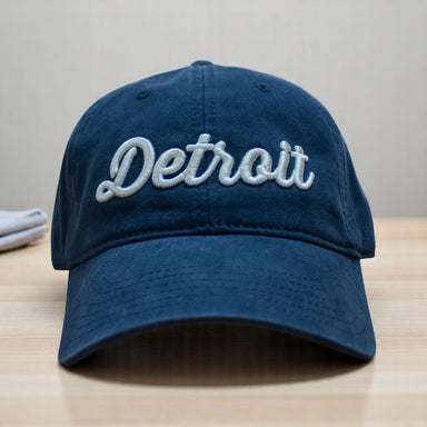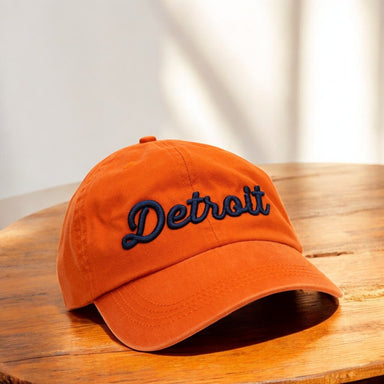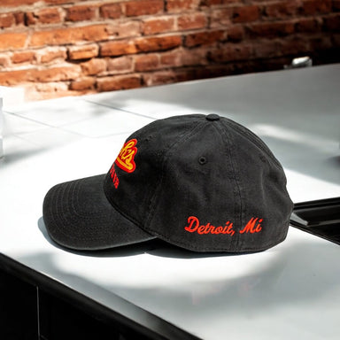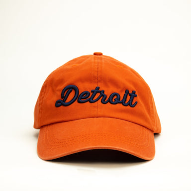 Felt applique sewn on front Premium chino twill Strap and buckle adjustment Structured, mid-profile, six-panel A Detroit Shirt Company exclusiv...