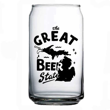 Can Glass - The Great Beer State Michigan $9.5016 oz Screen printed Made in USA Hand wash recommended