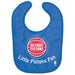 Officially licensed baby bib made of soft terry polyester front and absorbent cotton terry back. It is decorated with a fun full color imprint. Finished with adjustable baby soft hook and loop.