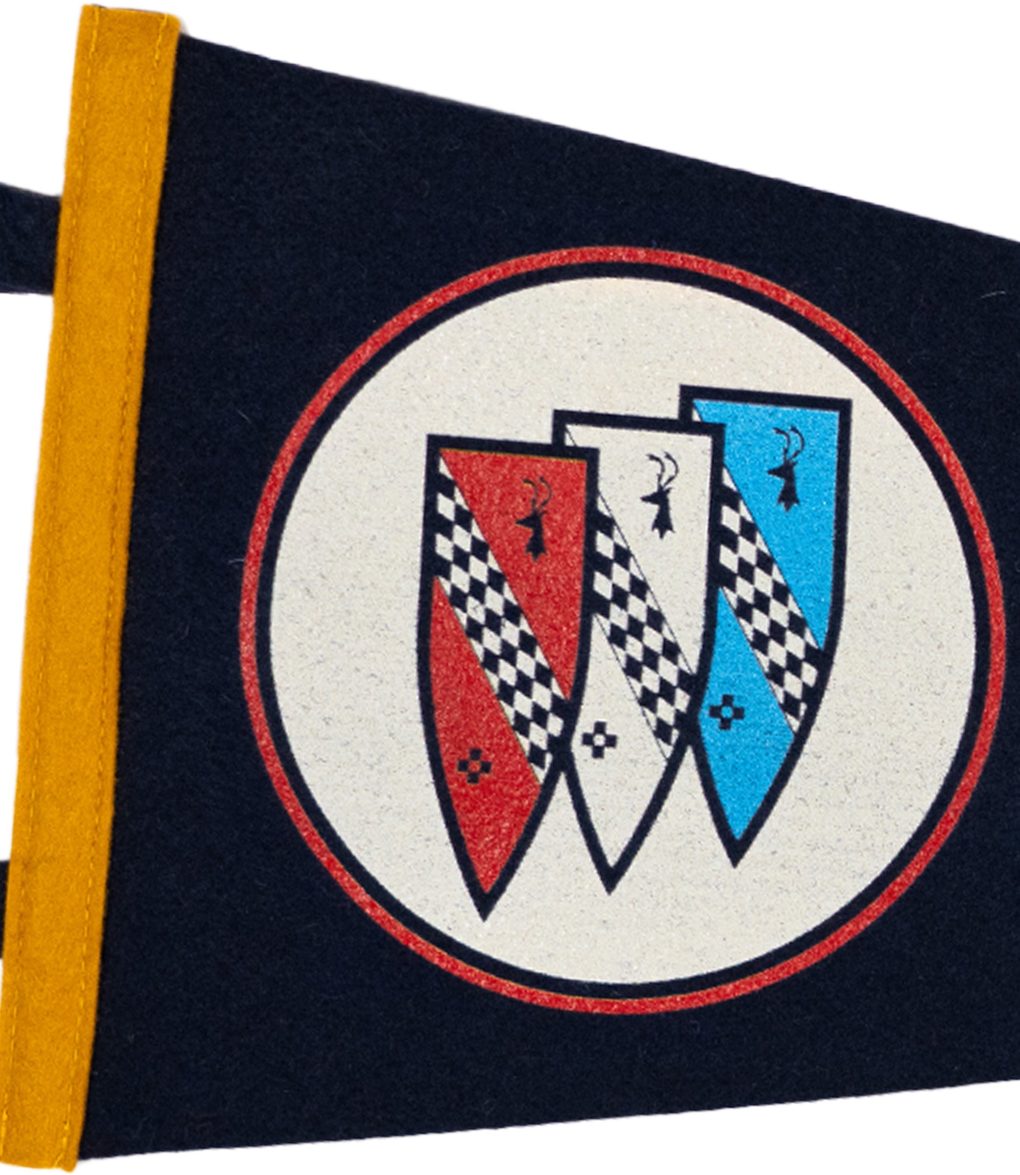 Celebrate your favorite classic car with this vintage inspired navy blue Buick pennant, perfect for car enthusiasts and collectors alike. Hang it in your garage, den, or showroom to showcase your passion for timeless automotive design and the iconic Buick brand.
