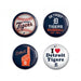 - Officially licensed button set of small 1 1/4" buttons are ideal for groups, parties with sports themes, or for daily display. Buttons come with a safety pin back. Made in USA.