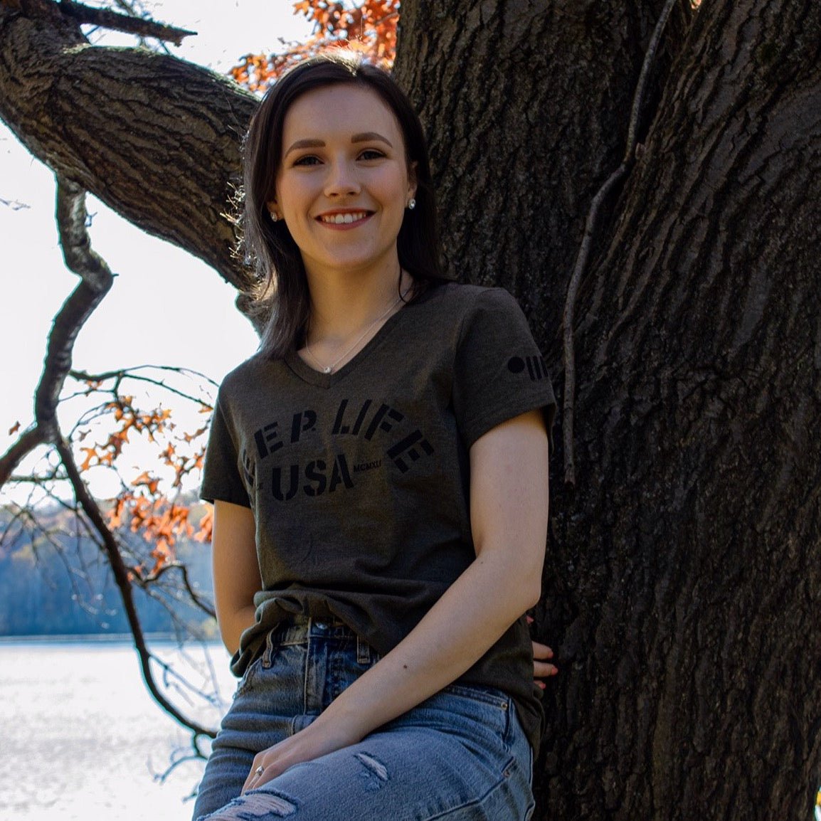 Ladies Jeep® Life V-neck - Military Green