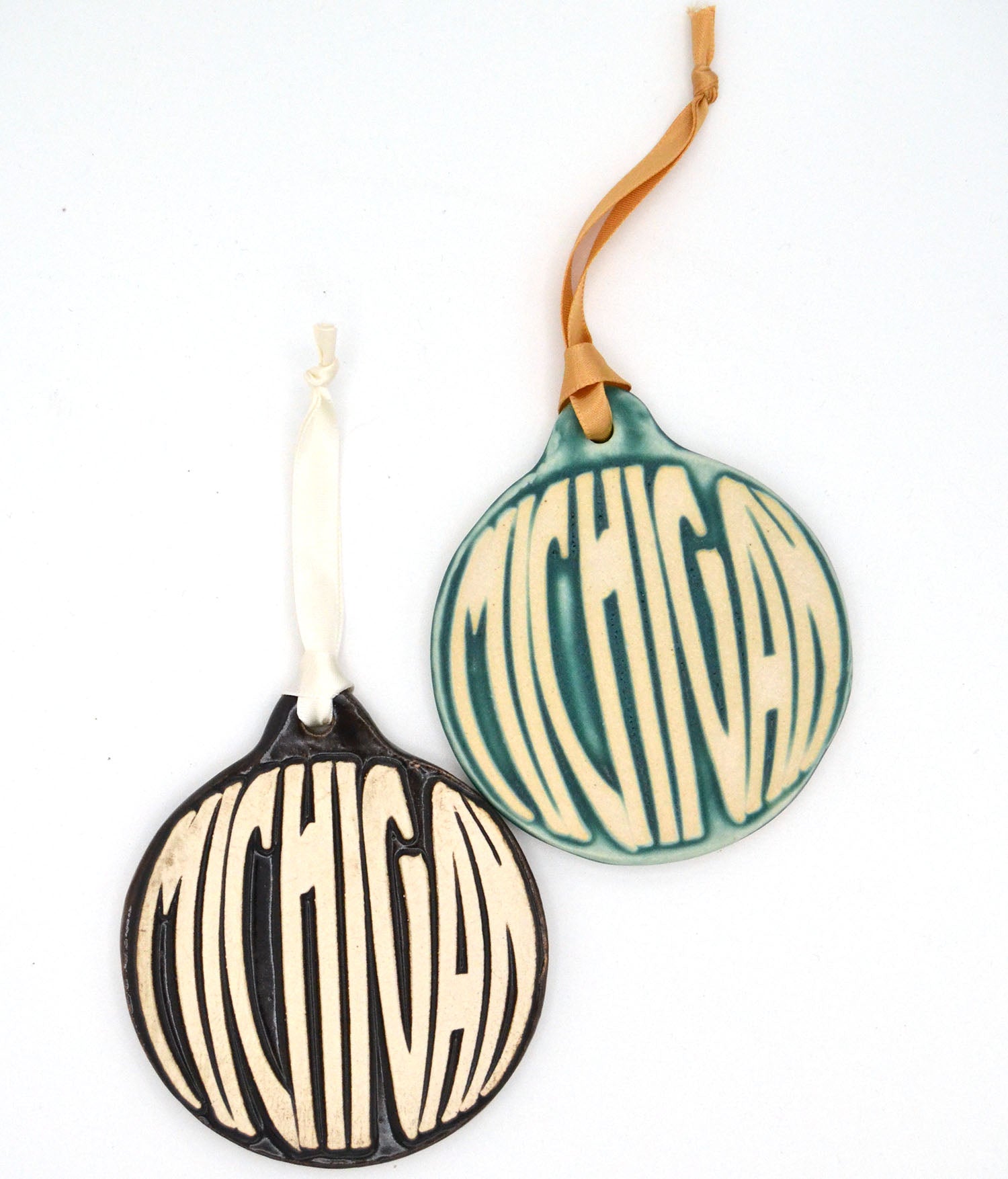 Our round Michigan ornaments say the name of our state loud and proud!