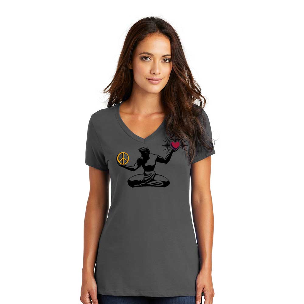 Ladies Relaxed V-neck Peace Love Detroit T-shirt - Charcoal Grey