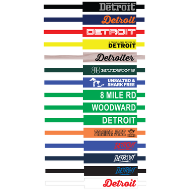 3/4" x 18" Made of polyester Printed on both sides Swivel lobster clasp A Detroit Shirt Company exclusive item